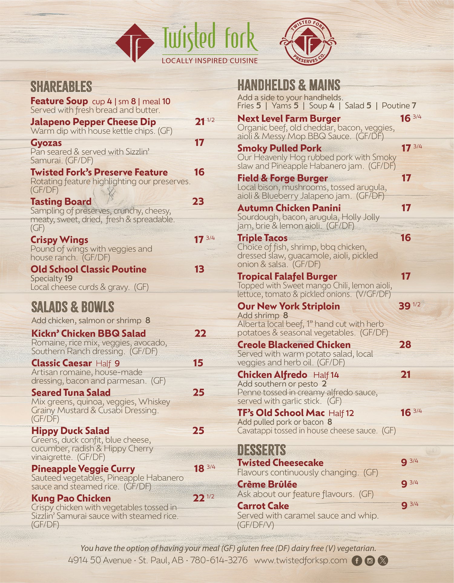 Twisted Fork restaurant in St. Paul, Alberta features locally inspired cuisine, with menus designed to fit products and flavours in season.
